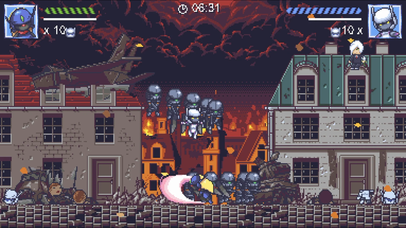 ベルジャンタウアー王国を突き進み、シングルプレイまたは協力プレイで、 魅力的なチビピクセル調の背景でさまざまなボスと対決。
